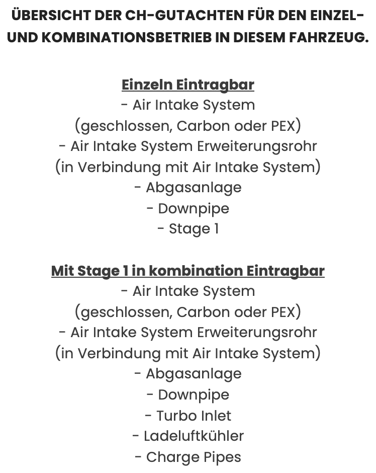 Active Suspension Control, Air Lift Performance, AirmaticPLUS, Akrapovič, APR, ASR Component, Bavarian Car Tuning, BTM-Turbo, Capristo, Carmosphere, CETE Automotive, Dinan, Eventuri, FAHRWairK, Flatee, Flow Down, FOXED.CARE, FRAMEOFF, gepfeffert, Grail, HJS Motorsport & Tuning, HSPEED, KW Suspensions, mbDESIGN, null-bar, Pipercross, Rotiform, Stoll Sport, STREETEC, ST Suspensions, Wagner Tuning, Wheelforce, YIDO Performance Wheels und viele mehr
