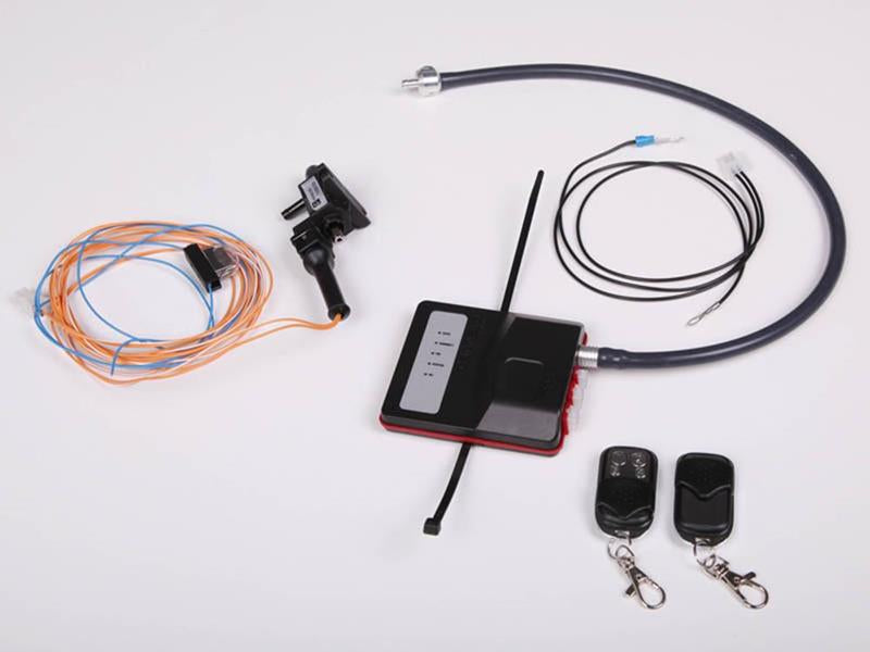 Programmierbare Klappensteuerung CES3 von Capristo mit Staudrucküberwachung, Software Capristo-Control-Center, zwei FM-Fernbedienungen, Kabel und Schläuche.