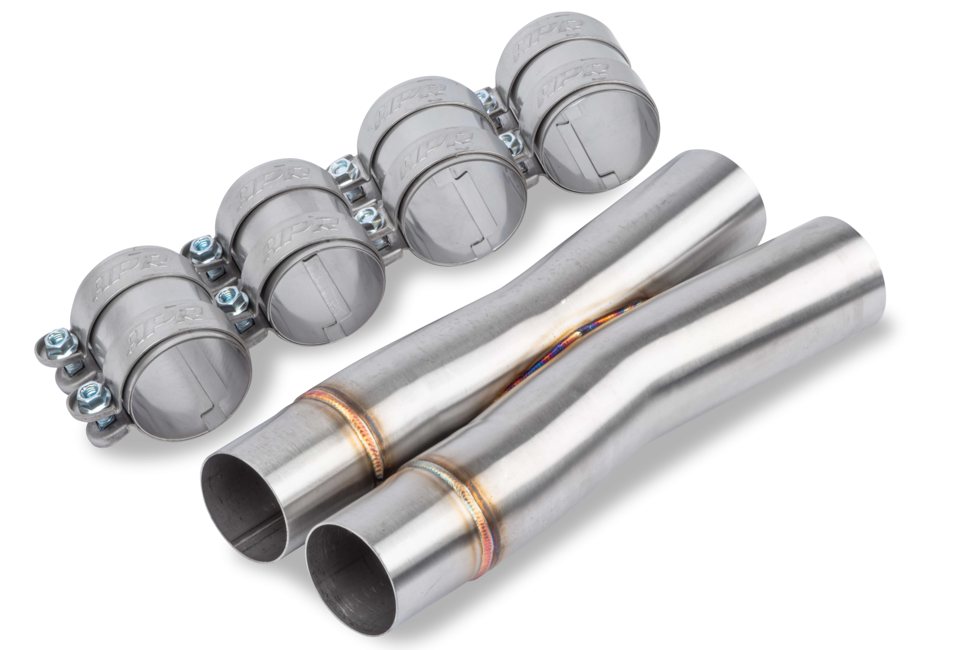 Dieses Upgrade ermöglicht einen reibungslosen Übergang zwischen den beiden Teilen und somit auch einen besseren Flow sowie weniger Abgasgegendruck. Somit fährst du volle 76 mm Durchmesser von vorne bis hinten. Natürlich trägt die X-Pipe auch ihren Teil an einem noch eindrucksvolleren Sound bei. Auch hier setzen wir auf qualitativ hochwertiges T304-Edelstahl welches im WIG Schweiss-Verfahren verarbeitet wurde. Natürlich befinden sich auch noch vier weitere APR Rohrschellen im Paket.