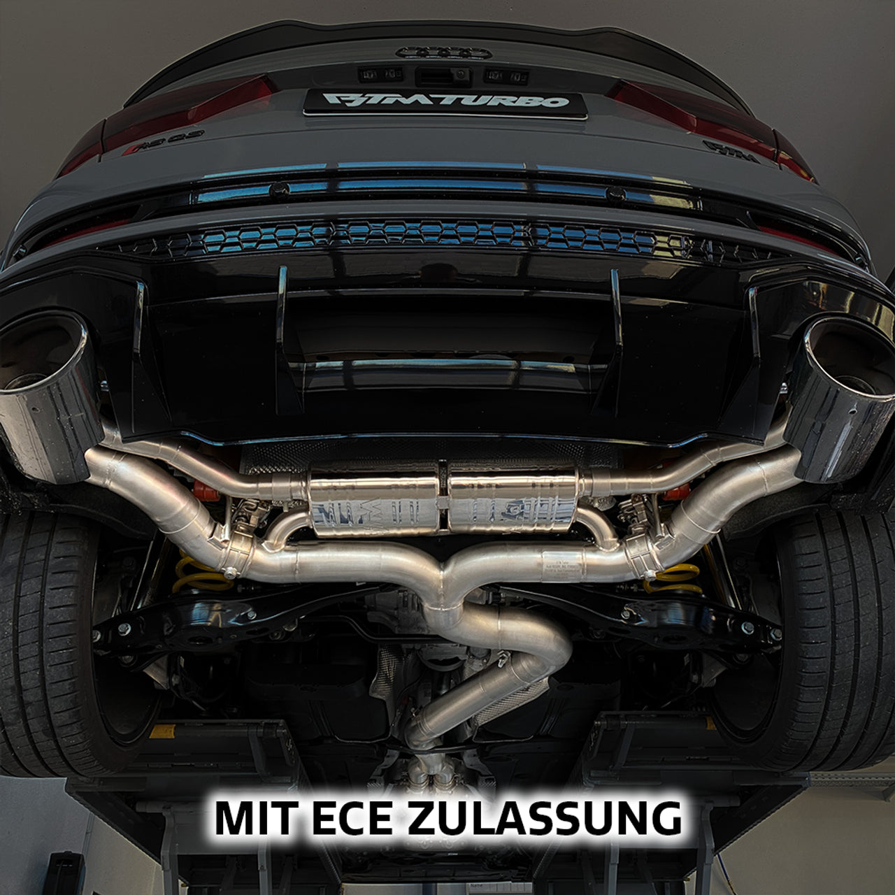 Die BTM Turbo Abgasanlage für den Audi RSQ3 F3 ist eine hochwertige Performance-Abgasanlage, die speziell für eine verbesserte Klangqualität entwickelt wurde. Mit der ECE-Zulassung kann die Abgasanlage legal auf öffentlichen Straßen gefahren werden und muss nicht nochmal auf einer TÜV Prüfstelle vorgeführt werden