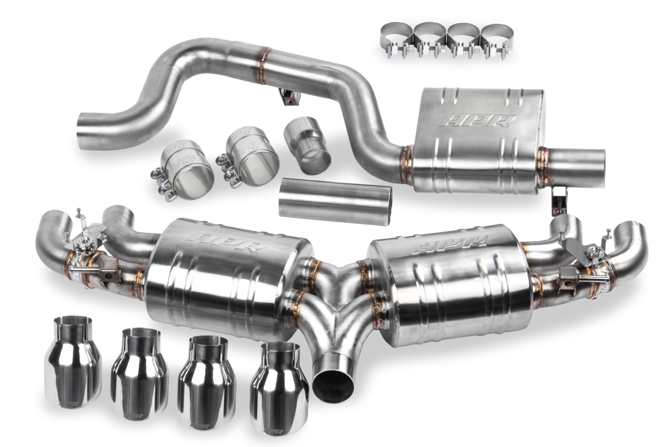 Das APR Catback-System personalisiert das Aussehen, den Sound und die Leistung deines Volkswagen Golf R.