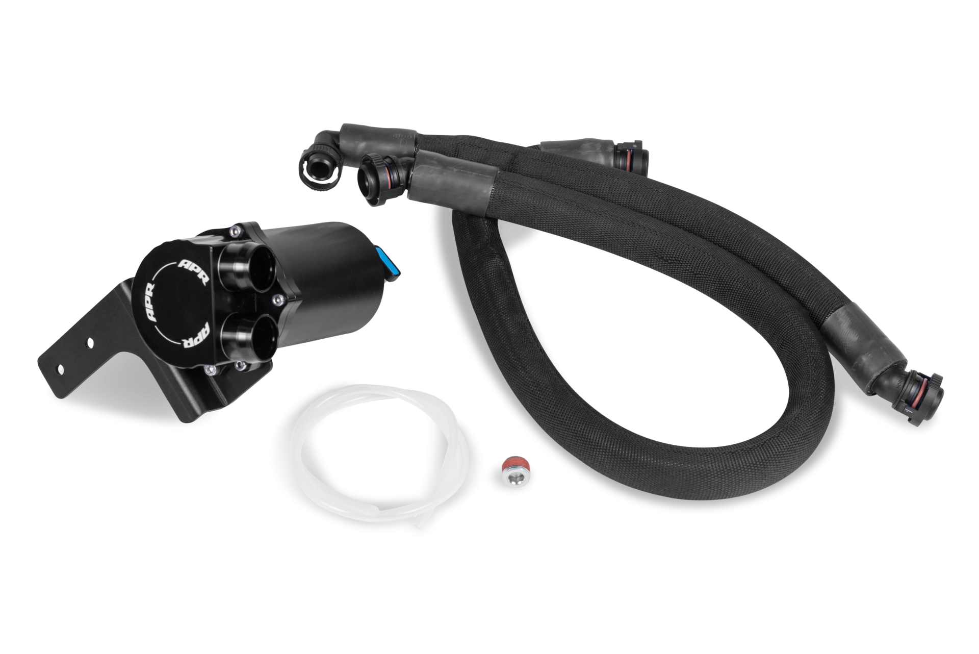 Das APR Oil Catch Can System fängt überflüssige Öldämpfe und Rückstände aus dem Kurbelwellengehäuse auf und verhindert so, dass diese in den Motor gelangen.