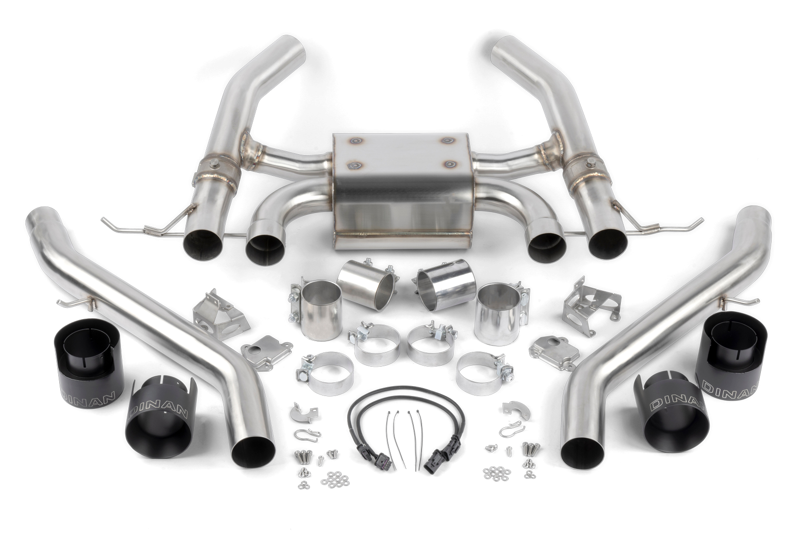 Optisch wurde der Dinan G8x M3/M4 Auspuff komplett aus T304 Edelstahl gefertigt und TIG-geschweißt, um die beste Optik und Farbe zu gewährleisten. Das gesamte System ist dann Bürste fertig, um eine weitere Garantie für eine makellose suchen System aus der Box. Die Liebe zum Detail beschränkt sich nicht nur auf die Teile der Anlage, die man nicht sehen kann, wenn der Auspuff installiert ist, sondern erstreckt sich auch auf die Auspuffendrohre selbst. Der Dinan-Auspuff umfasst massive, vierfache 4,5-Zoll (114 mm)-Klemmendstücke aus poliertem Edelstahl und lasergravierten Auspuffendrohren. Trotz der scheinbar cartoonhaften Größe auf dem Papier, die Tipps nahtlos ineinandergreifen und füllen Sie die Werksausschnitte, um die OEM + Look mit einer gesunden Dosis von hörbaren Haltung abzuschließen.