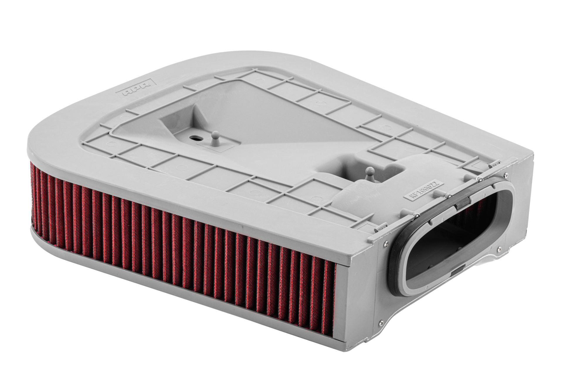 Der Ansaugfilter wurde auf dem Prüfstand optimiert um die maximale Durchflussmenge zu erreichen und gleichzeitig ein Filtermedium zu verwenden, dass eine angemessene Filtration und eine längere Lebensdauer gewährleistet. Durch mehrere Konstruktionsänderungen, die auf dem Prüfstand verifiziert wurden, konnten wir die CFM um bis zu 12 % gegenüber dem Serienprodukt erhöhen! Die allgemeine Form und das Design des Filters ähnelt aufgrund seiner Position dem Werksfilter, weist aber im Inneren mehrere Verbesserungen auf, die den Luftdurchsatz über den Austausch des Filtermediums hinaus erhöhen.