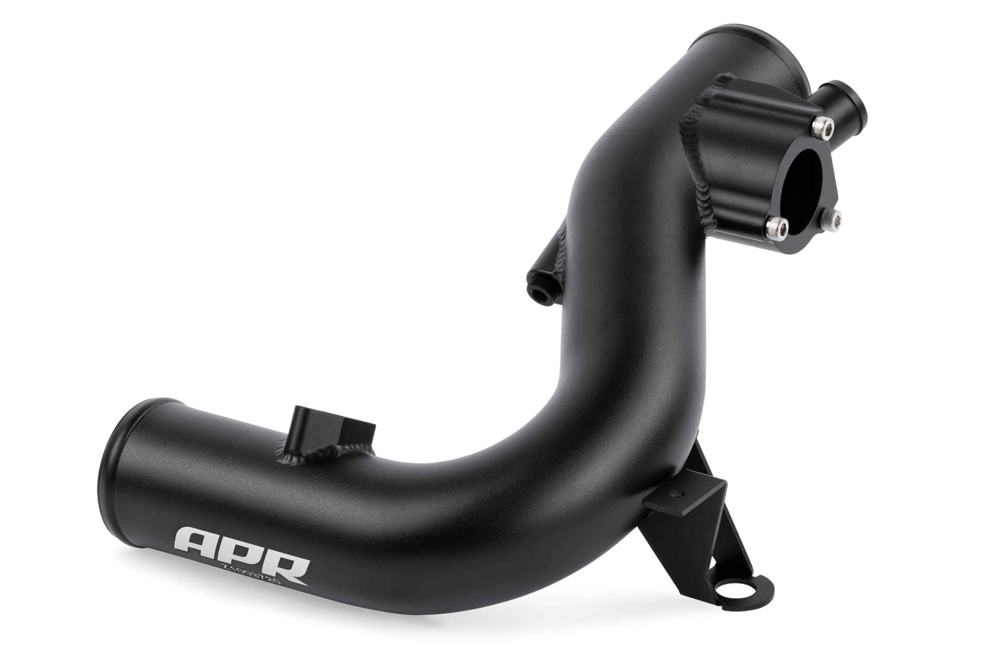 Die aus Aluminium gefertigte Throttle Body Pipe ersetzt das werksseitige Kunfststoffrohr dieses einen konstanteren Durchmesser aufweist. Bei der Entwicklung wurde der Luftstrom auf ein Maximum optimiert in dem so wenige Bögen und enge Radius Kurven gefertigt wurden. Die Innenverrohrung glänzt durch sein widerstandsfähiges Material was ebenfalls unter extremen Bedingungen standhält. Das Rohr verfügt über einen zusätzlichen Anschluss der zum Beispiel für eine Wasser-/Methanol Einspritzung verwendet werden kann. Durch einen NPT-Hahn (Hochdruck Kugel-Hahn) kann der Anschluss jederzeit bei nicht Verwendung verschlossen werden. Um ein Verrutschen der Schläuche zu verhindern verfügt das Rohr über gerollte Verbindungspunkte. Die TIG-Geschweißten (Wolfram-Intergas Schweißung) Montagehalterungen und Sensoranschlüsse sorgen dazu für eine starke Verbindung. Zusätzlich wurde die Throttle Body Pipe an der Oberfläche mit einem schwarzen satin Farbton lackiert. Alle genannten Eigenschaften führen zu einem zuverlässigen Setup, dass zu einer höheren Leistung am Fahrzeug führt. Das Rohr ist sowohl mit den Serien- als auch APR-Ladeschläuchen kompatibel.