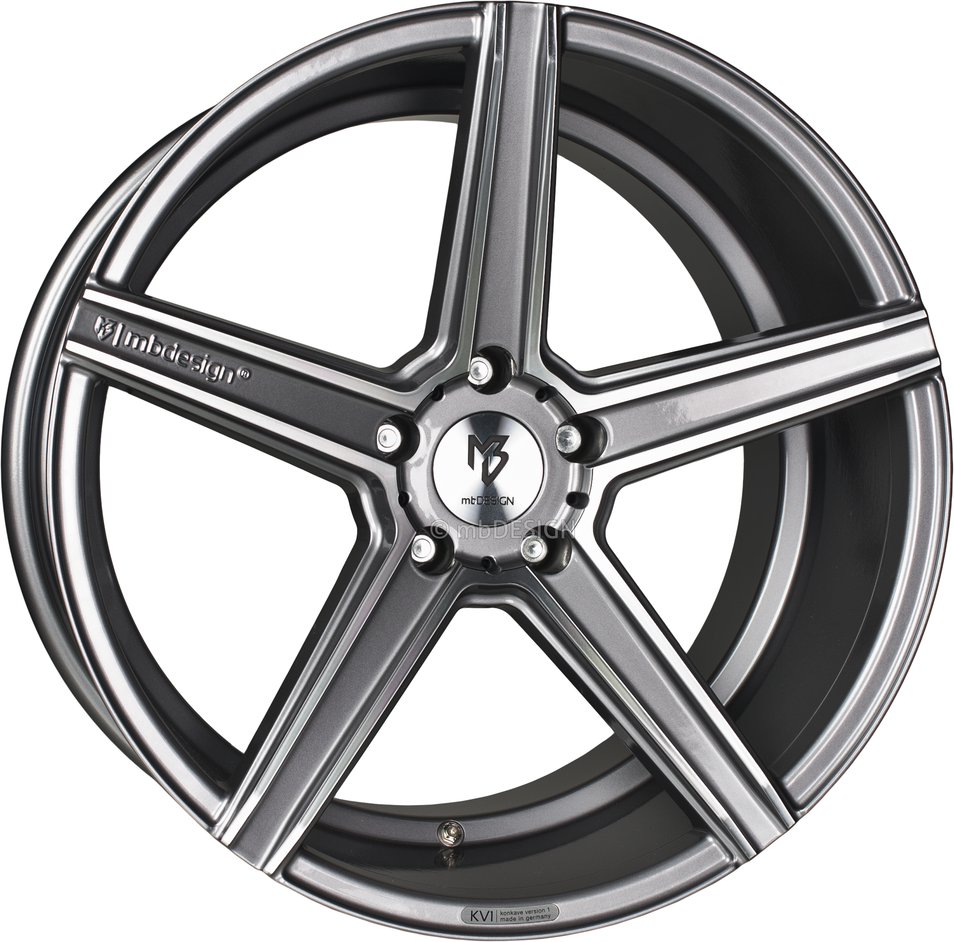 mbDESIGN Aluminiumrad gegossen KV1 DC 10,5x20 Zoll (stark konkaves Design) Grau glänzend lackiert Konturen poliert