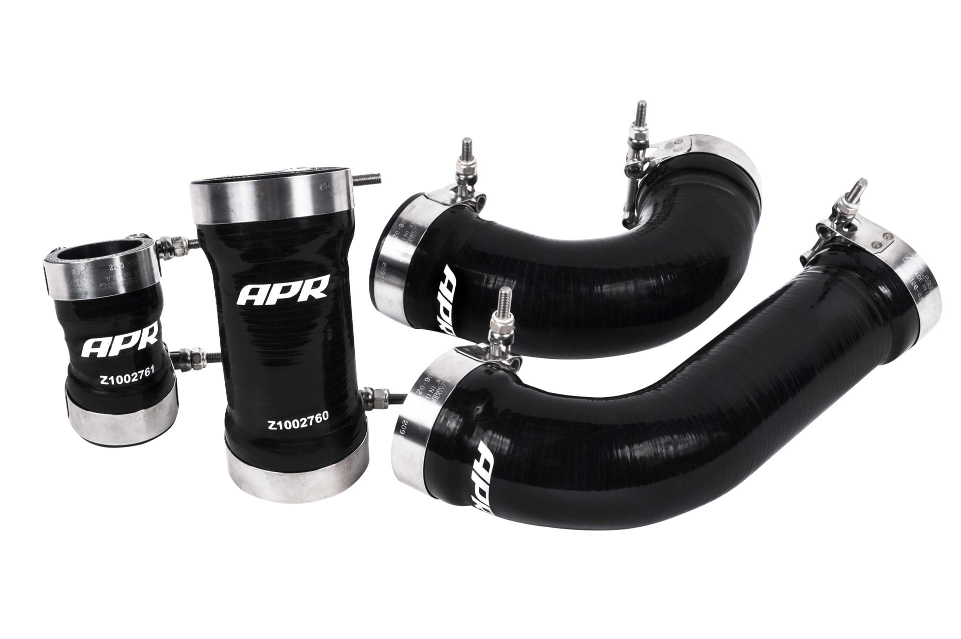 Das System wird sowohl als komplettes Kit als auch einzeln verkauft und ist vollständig kompatibel mit dem aufgerüsteten APR Ladeluftkühlersystem, dem OEM Drosselklappengehäuse und allen OEM Turboladern. Dieses umfasst den Turboauslassschlauch, Drosselklappenschlauch und beide Ladeluftkühlerschläuche.