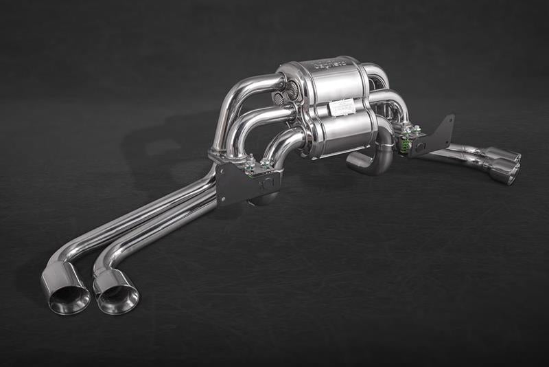 Sportauspuff Ferrari 430 Capristo Twin-Sound mit Abgasklappen oder Version Racing ohne Klappen, 1.4828 Edelstahl poliert.