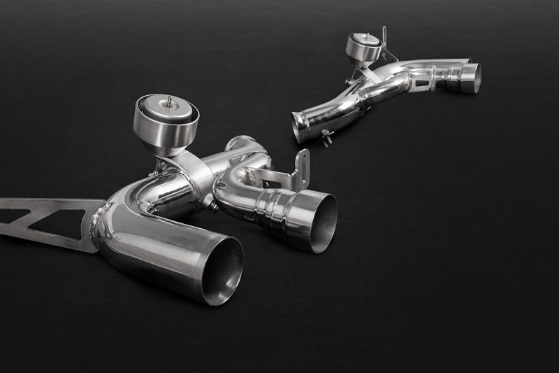 Sportauspuff Ferrari California T Capristo (F149M ab Bj. 2014) mit Klappen, 1.4828 Edelstahl poliert, inkl. Fernbedienungskit (öffnen/schliessen)