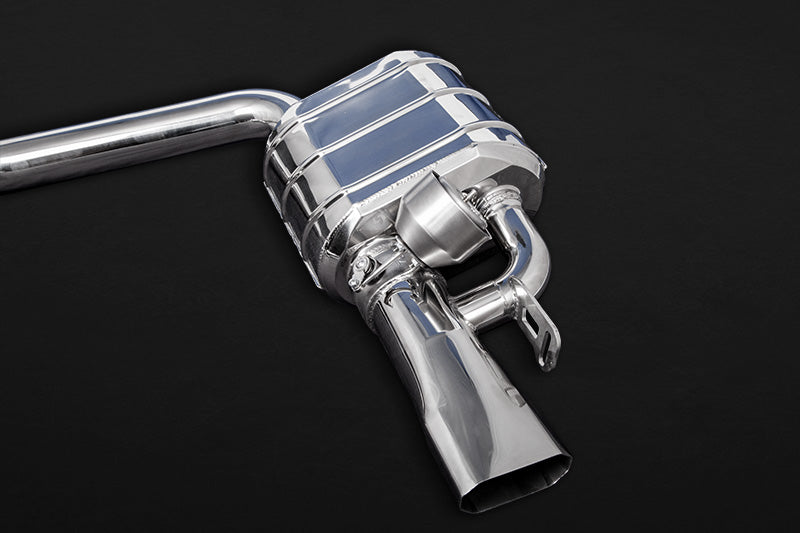 Sportauspuff Mercedes E53 AMG Capristo Limousine (W213), T-Modell (S213) und Coupé (C238), 2 Klappen, Edelstahl poliert, incl. programmierbarer Steuerung CES-3, zwei Handsender, Anschlusskabel und Schläuche.
