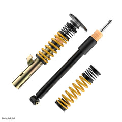 Die hochwertigen ST XTA Gewindefahrwerken basieren auf dem Zweirohrdämpfungsprinzip in reibungsarmen und druckbeständigen Dämpfergehäusen. Dabei werden die Dämpfer direkt bei KW gefertigt. Ein Monoblock-Führungs- und Dichtungspaket reduziert im Dämpfer die Reibung beim Ein- und Austauchen der verchromten Kolbenstange. Dazu sorgen ein optimaler Korrosionsschutz und eine mehrfache Versiegelung des verzinkten Federbeins für einen langen Fahrspaß mit den ST XTA Gewindefahrwerken.